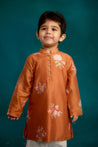 Our Kesar Chitthi Kurta Set is crafted for little celebrations that call for comfort with a touch of charm. With a smart placket detail finished with a single button in contrast pink thread, this set is playful in detail. Made in 100% handwoven Chanderi, it keeps your child at ease all day while carrying the grace of a festive outfit.