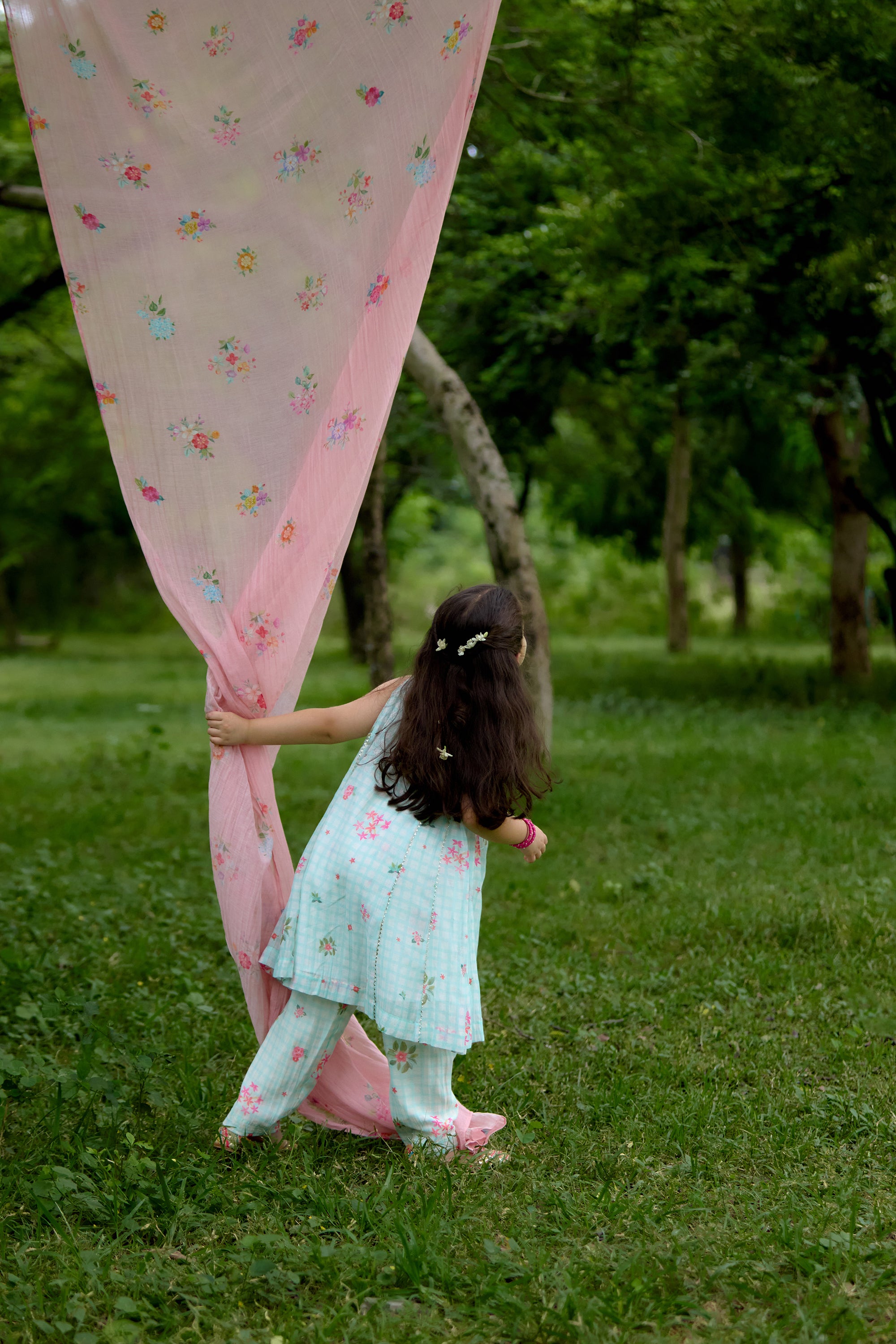 Our Naariyal Baageecha Flared Kurta Set takes inspiration from the classic layouts of a garden, reimagined as a playful check print. The soft naariyal shade forms the base, bringing freshness and charm to festive days. Crafted in 100% Handwoven Chanderi with a breathable 100% cotton lining, it’s as easy to wear as it is joyful.