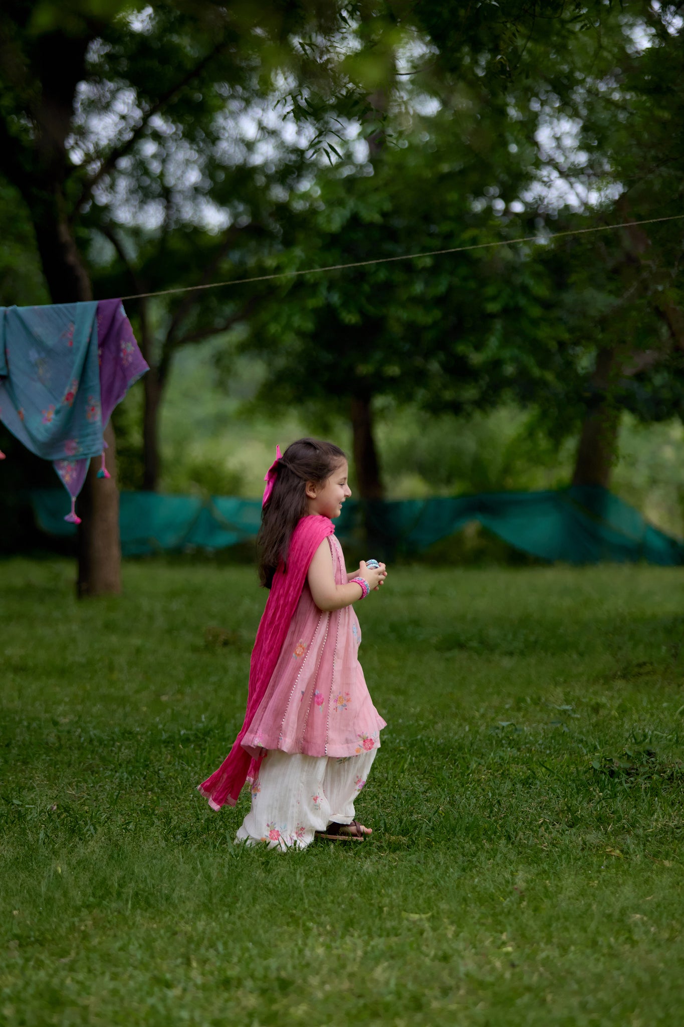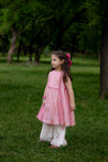 The Seher Gulaab Flared Kurta Set captures the gentle hues of dawn and roses, a play of blush and dusty pink brought together in flowing kalis. Made in 100% Mul Chanderi with a soft 100% cotton lining, it carries both elegance and comfort for every little celebration.