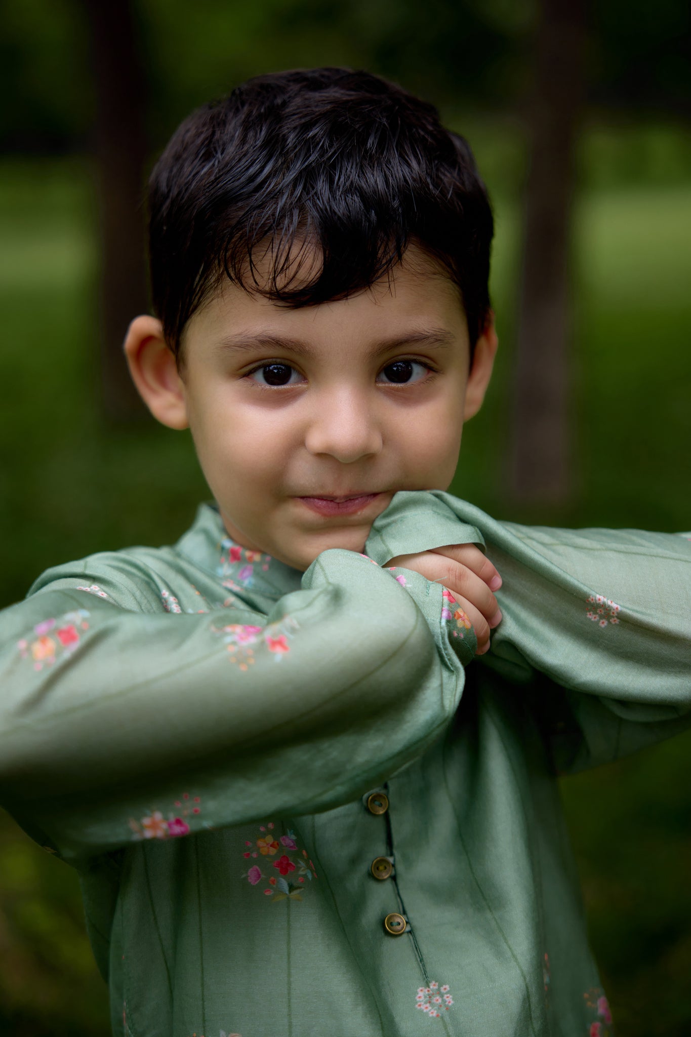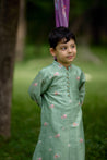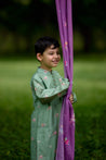 Our Tulsi Rekh Chitthi Kurta Set is crafted for little celebrations that call for comfort with a touch of charm. With a smart placket detail finished with a single button in contrast pink thread, this set is playful in detail. Made in 100% handwoven Chanderi, it keeps your child at ease all day while carrying the grace of a festive outfit.